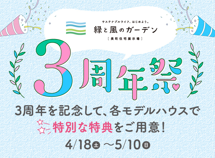 創業150年を超える長きにわたり、お客様からのご愛顧への感謝を込めてた「住まいづくり応援感謝祭」を行います。 4月・5月ご契約特典として、最大180万円分もの豪華特典をご用意しております。 さらに6月7日までのお受付で、大抽選会も同時開催中です!