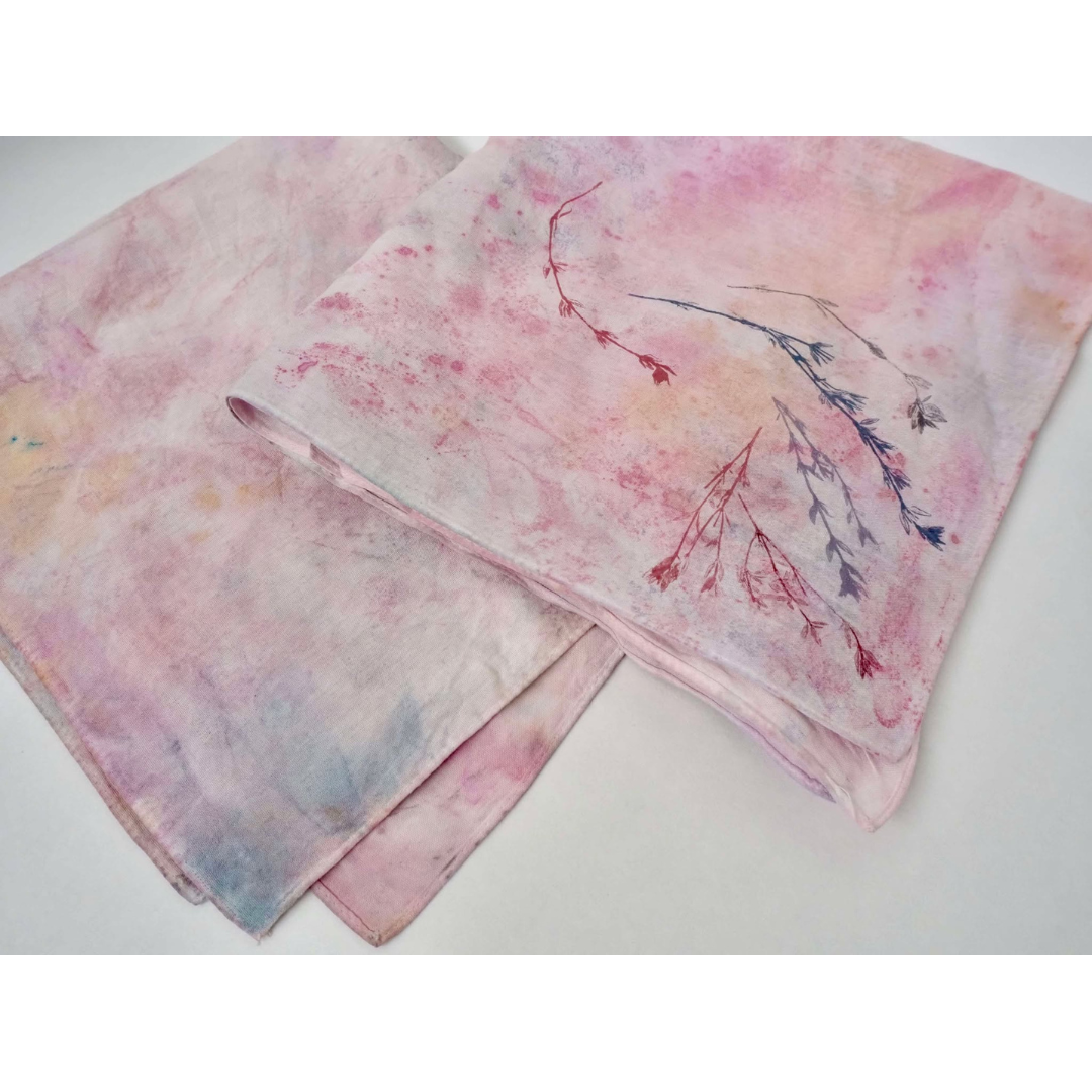 *ムラ染めのハンカチは桃色、紫、水色などをご用意しますが、先着順のため色の指定はできかねます。