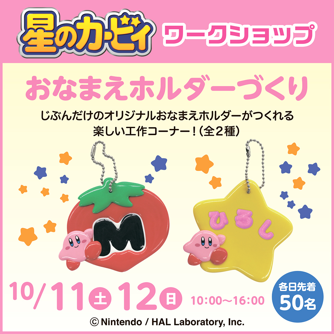 星のカービィの工作が楽しめるワークショップを開催! . じぶんだけのオリジナルおなまえホルダーが作れる工作コーナー! . ぜひお気軽におこしください! . ※安全対策を考慮した運営をしております。 ※画像はイメージです。