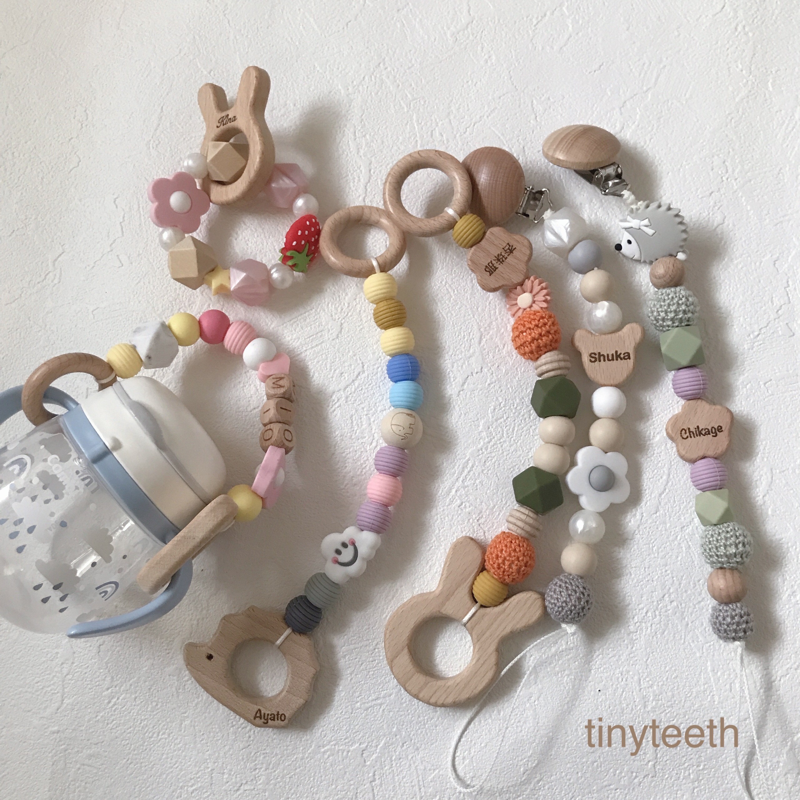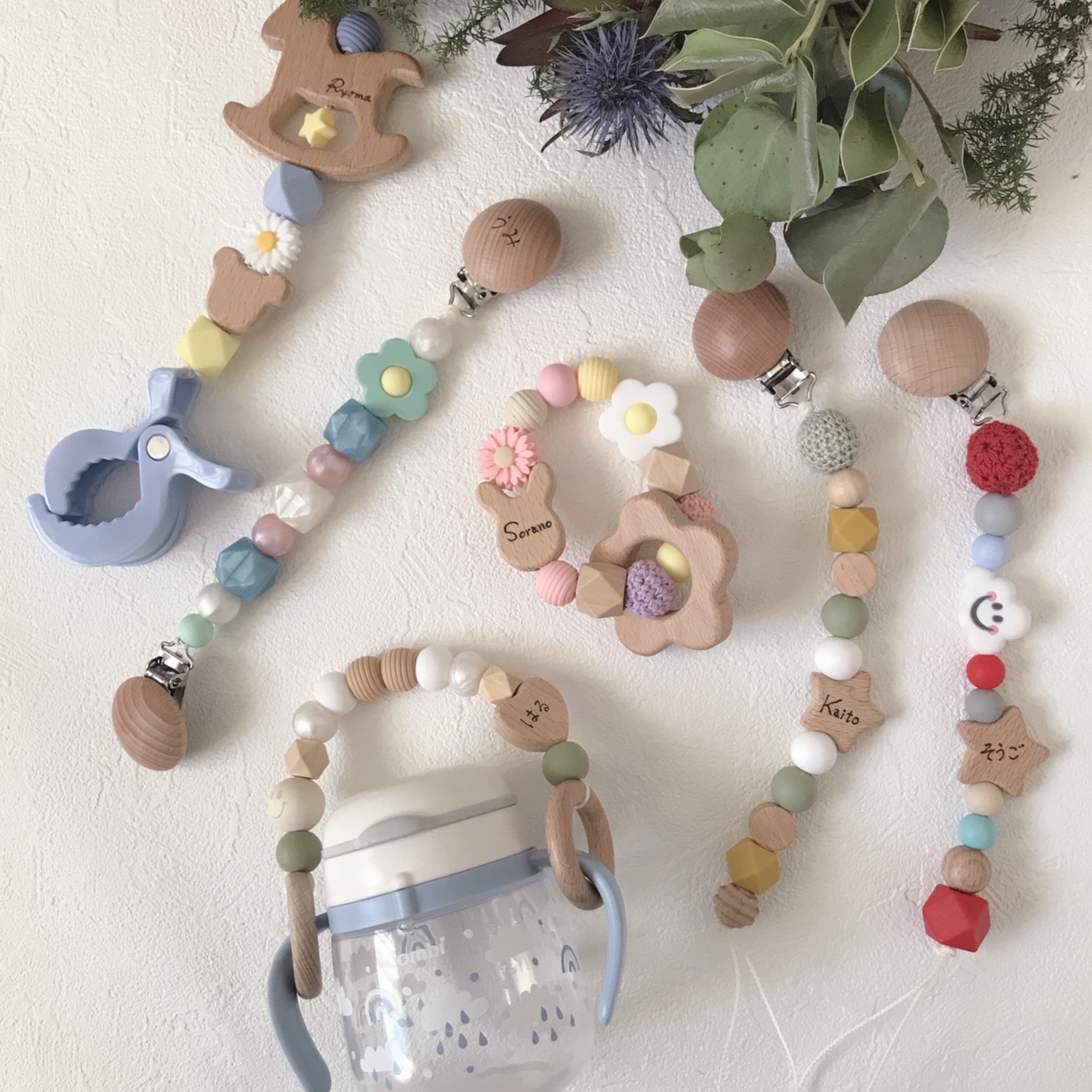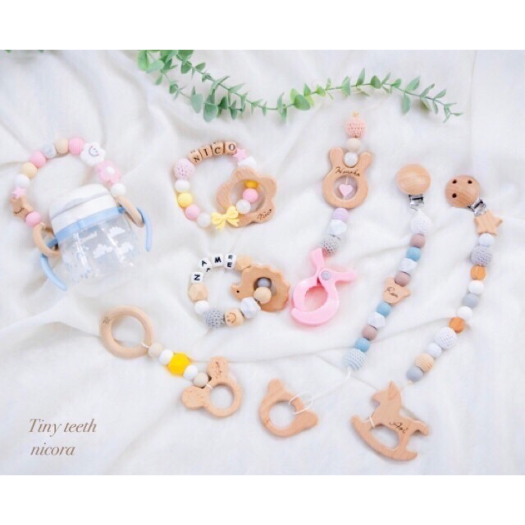 シリコンや木のぬくもりあふれるパーツを組み合わせて、歯固めやおもちゃホルダーなどベビーアイテムを作ってみませんか?