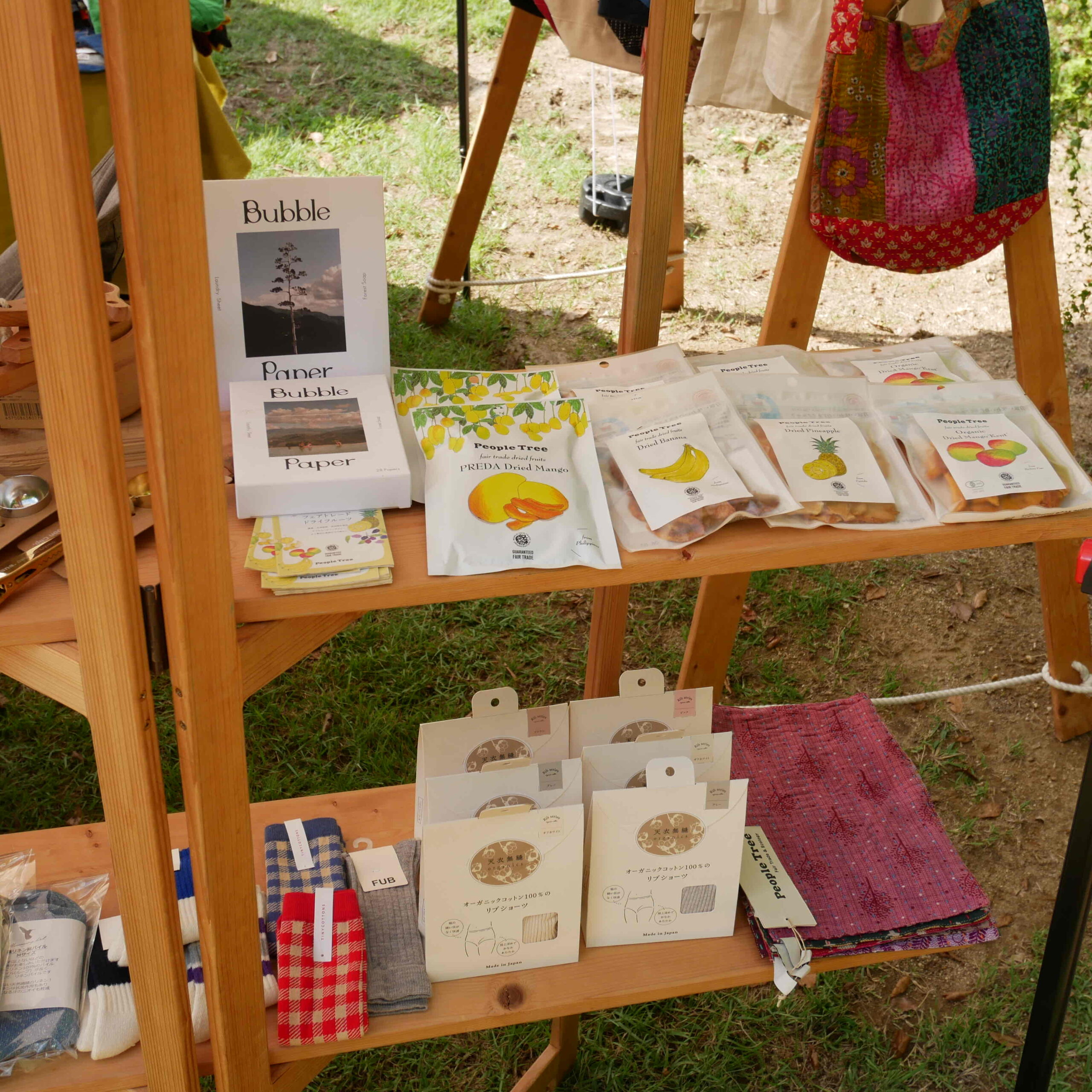 マルシェでは、旬のお野菜や旬の食材を使ったお菓子やお花、こども服、環境に優しい雑貨などが並びます。