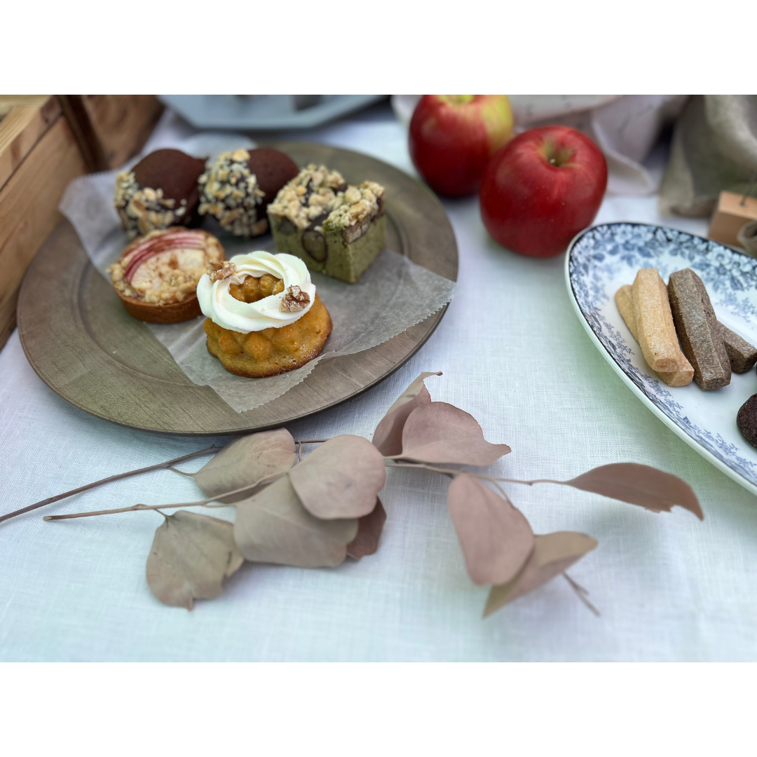 11月は洋梨やりんごなど旬の果物を使ったお菓子の他、有機フルーツを使った米粉シュトレンもお持ちします。