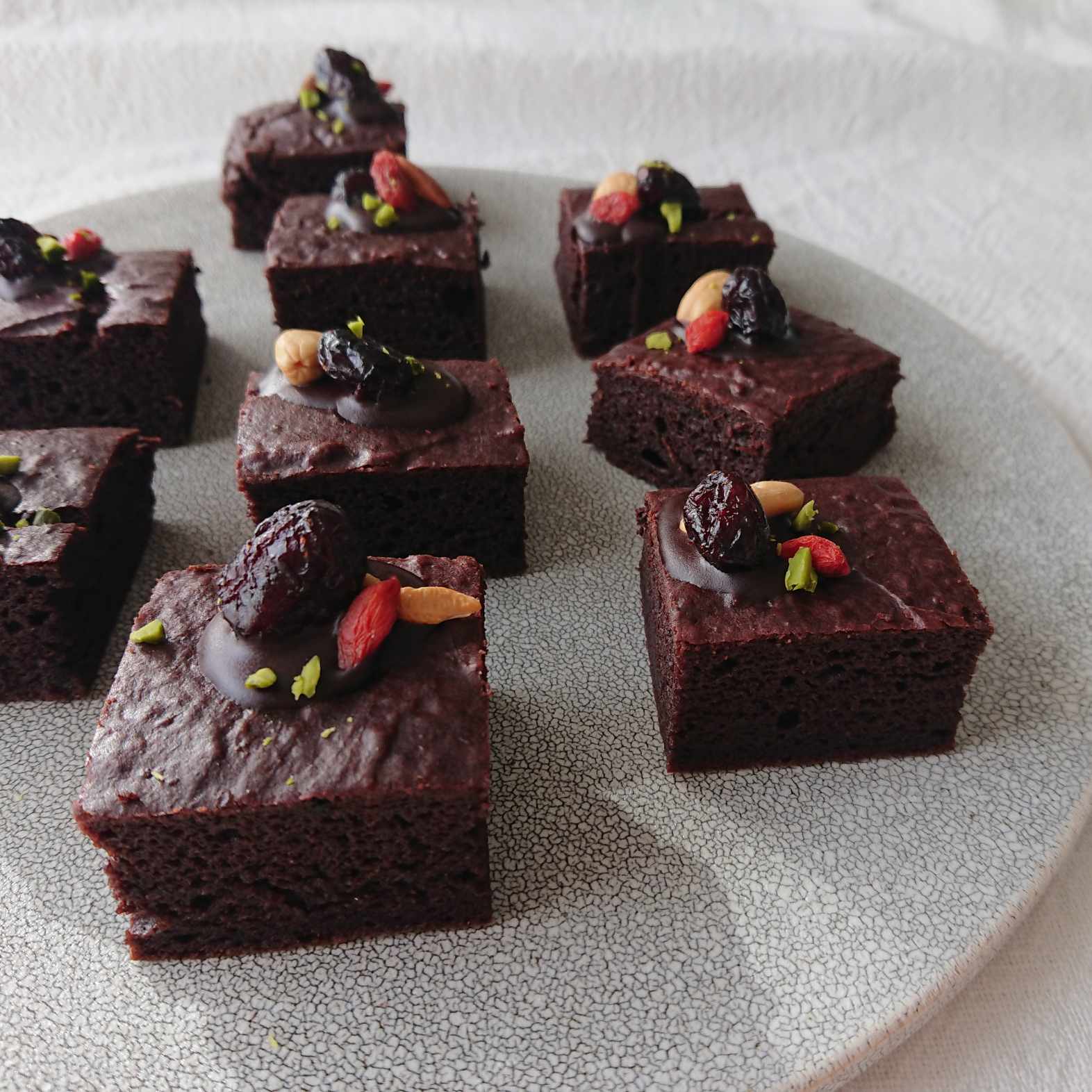 ラム酒が香るケーキ。ヴァローナのカカオを贅沢に使った、濃厚だけどヘルシーでお腹に軽いケーキです。