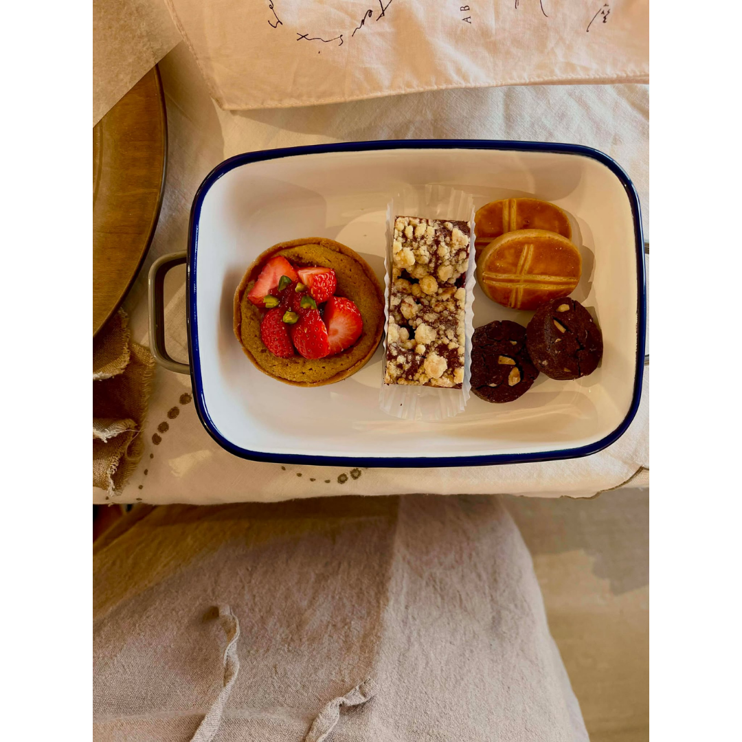 容器は5-7cm程高さのある容器をおすすめ致します。クッキーは湿気やすいため、瓶や密閉できる容器をお持ちいただくと安心です。形崩れしにくいものであれば、ミツロウラップでお包みするのもおすすめです。