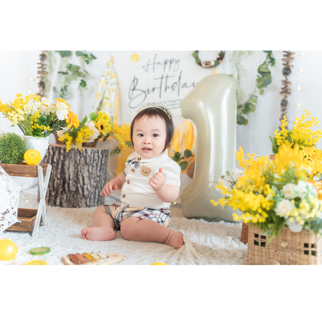 「1st Birthday」のタペストリーや数字のバルーンと一緒に、おしゃれな記念写真を残しましょう📸