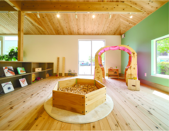 お子さま向けのプレイスペースには、天然素材を中心としたおもちゃをご用意。お子さまも退屈せず楽しく過ごせます。