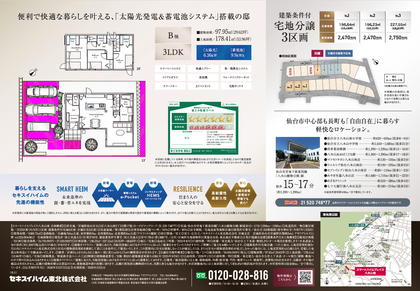 4月~5月の土・日・祝で、八木山南2丁目の分譲地にて見学会を開催しております。 建築条件付き宅地分譲3区画、建売住宅1棟がご見学可能です。 ※まもなく完成を控えている建売住宅3棟もございます。 仙台市地下鉄東西線『八木山動物公園駅』まで徒歩15~17分、ウェルシア、マツモトキヨシ、セブンイレブンとお買い物施設までと5分圏内と利便性の良い立地にございます。 仙台駅までご通勤の方、駅徒歩圏内をご希望の方、地下鉄沿線沿いをご希望の方、分譲地が気になっている方など是非お気軽にご見学いかがでしょうか? WEBからご見学予約いただいたお客様へ、5,000ポイント分のデジタルギフトをプレゼントしております。(giftee Box) 皆様のご来場予約心よりお待ちしております。